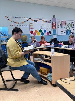 Frau Pomrehn las in Klasse 6b in Hohenleipisch vor.