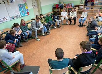 Göran Schrey beim Vorlesen in Klasse 4a in Plessa.