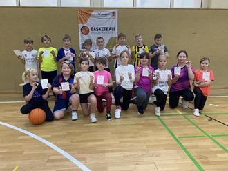 Die Klasse 4a freute sich über ihre Basketball-Spielabzeichen.