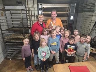 Mit einer sichtlich aufgeregten Kinderschar ging es also am Morgen mit dem Bus nach Gorden. Beim Bäckermeister Schulze wurden wir schon erwartet. Geduldig zeigte er den Kindern zunächst die Backstube und erklärte die Funktionsweise der unterschiedlichen Öfen.