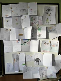 Frau Kamenz las das Buch „Der kleine Raubritter“ von Stefan Hänel vor. Gleichzeitig konnten die Kinder dazu kreativ werden und fertigten kleine Kunstwerke passend zur Geschichte an.