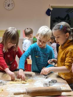 In der zweiten Adventswoche hieß es „In der Weihnachtsbäckerei“. Mit vielen leckeren Zutaten machten wir uns fröhlich ans Werk. Es wurde fleißig gewogen, abgemessen und gerührt bis der Teig fertig war. Nun ging es ans Ausrollen und Ausstechen.