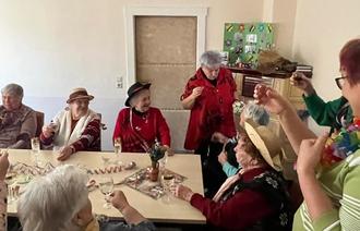 Zum Kaffee gab es dann traditionell Pfannkuchen. Im Hintergrund lief Partymusik, wie es zu Fastnacht üblich ist. Unser DC - Mitglied Bernd Schiller hat uns diese zur Verfügung gestellt. So wurden schon beim Kaffeetrinken Erinnerungen darüber ausgetauscht, wie es früher zuging. Die Frauen erzählten über Fastnachtsbräuche aus ihrer Jugendzeit und erinnerten sich an die eine oder andere Anekdote von damals. Die Musik animierte auch zum Mitsingen und Schunkeln, denn Tanzen ist für die meisten leider nicht mehr möglich.