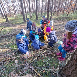 So gut gestärkt ging es dann gespannt zum Wald. Tatsächlich, beim genauen Hinschauen und Moos Beiseiteschieben konnten alle Kinder wieder eine kleine Osterüberraschung entdecken und in ihr Osterkörbchen legen.