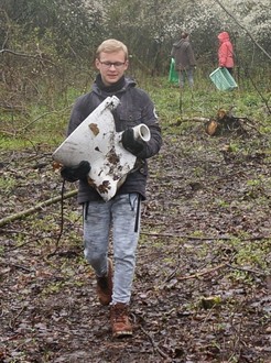 Trotz ungemütlichen Wetters waren ca. 25 Helfer dem Aufruf gefolgt. Danke an Alle, die dabei waren. Unermüdlich wurden fünf Kofferraumladungen mit leeren Gläsern und Flaschen, welche vergessliche Mitbürger liegengelassen haben, abtransportiert. Selbst ein Klo wurde gefunden!