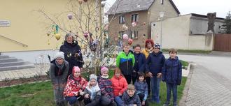 Dank dem Bauhof bekamen wir in diesem Jahr eine Birke vor das Gemeindezentrum. Wir Frauen schmückten die Außenanlagen und den Pavillon mit Girlanden und bunten Ostereiern, die im Vorjahr von den Bürgern aus Hohenleipisch und dem Kindergarten Storchennest Hohenleipisch deren Eltern und Großeltern gesponsert wurden. Die Schüler der Klasse 4 unserer Schule schmückten mit ihrer Lehrerin Frau Lehmann den Osterbaum in der mittleren Etage des Baumes. Die untere Ebene behalten wir für den Kindergarten frei. Danke für die Unterstützung.