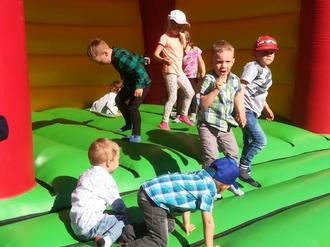 Auch das „Kinderland in Knappenhand“ steht unter dem Motto „Bergbau“ und so können die Kinder z.B. in einem Sandcontainer auf Schatzsuche gehen, während nebenan beim Truck von EnviaM die Vereine für ein gemeinnütziges Projekt um die Wette radeln. In einem begehbaren Clownskopf bläst der Wind Luftballons, die die Kinder fangen können, durch die Gegend. Beim Kinderschminken können sich Jungen und Mädchen in einen Clown oder eine Fee verwandeln. Die Feuerwehr zeigt den Kindern einen Einsatzwagen und lädt zu Wasserspielen ein. Husch der Gaukler hat Dinge zum Ausprobieren dabei: Diabolo, Netzball, Teller drehen, Springseil, Reifen, Stelzen, Ringe werfen … Ältere Kinder können sich beim Armbrustschießen ausprobieren. Auf der Hüpfburg können sich kleine und große Kinder richtig austoben. Und Clownin Lollipop ist eine Luftballonkünstlerin, die mit den Kindern tolle Figuren aus Luftballons formt. Auch Husch der Gaukler ist ein Luftballonkünstler, der nachmittags auf der Bühne sein Programm mit Gesang eröffnet. In seinem Zirkus entstehen tolle Luftballontiere, Höhepunkt im Zirkus sind jedoch die Kinder, die als Artisten Teller auf Stäben tanzen lassen und mit Hula-Reifen, Springseil und Radschlagen ihr Können zeigen.