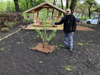 Seit Kurzem sind sogar die vom Amtsdirektor gespendeten zwei „Barbarakirschbäume“ oder auch „Winterkirsche“ genannt (Prunus subhirtella Autumnalis), zu bewundern.