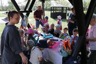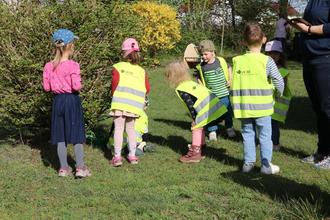 Dafür möchten wir uns recht herzlich bedanken. Die Kinder kosteten viele leckere Sachen und dabei entstanden Gespräche, wo denn die Körbchen sind. Auf unserem Kitaspielplatz waren keine zu sehen, so zogen wir unsere Sicherheitswesten an und gingen auf die Suche.