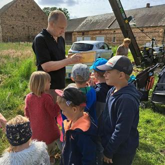 Die Kinder lernten die Honigbiene und die verschiedenen Aufgaben der kleinen Tierchen kennen. So wurde den Kindern erklärt, dass die Bienen nicht „nur“ die Pollen und den Nektar sammeln, auch sind sie für den Wabenbau und die Honigzubereitung zuständig. Natürlich gibt es da auch die Wächeterinnen, die den Eingang des Bienenstockes bewachen, und die Ammenbienen, die sich um die Larven kümmern.