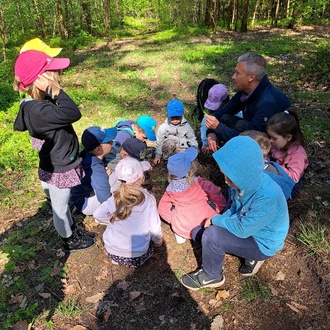 Zuallererst lauschten alle dem zauberhaften Vogelgezwitscher und Daniel konnte, zum Erstaunen unsere Kinder, unterschiedliche Vogelarten sogar am Gesang erkennen. Die Schichten des Waldes wurden erklärt und welche Pflanzen, Tiere dort zu finden sind.