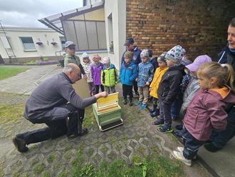 Die Kinder haben erfahren, dass die Bienen nicht „nur“ die Pollen und den Nektar sammeln, sondern auch für den Wabenbau und die Honigzubereitung zuständig sind.