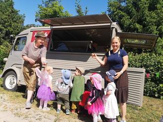 Aus Ortrand für uns angereist, wurden wir von einem Eiswagen mit leckeren Waffeln und bunter Abkühlung versorgt. So konnten die Beine von der Bank baumeln und die Gespräche wie Gedanken fließen.