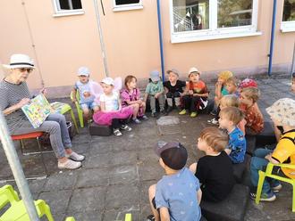 Doch Moment mal, das war es doch noch nicht. Nein ganz und gar nicht, denn wir hatten sehr großes Glück, Frau Kamenz vom Bücherstübchen in Plessa für den heutigen Tag gewinnen zu können. Zu unseren praktischen Erlebnissen vervollständigte sie den Vormittag, in dem sie unsere Fantasie erreichte. Verschiedene Altersstufen bekamen verschiedene Bücher vorgelesen. An Ruhe und staunenden Blicken konnten wir alle erkennen, wie sehr Bücher Kinder faszinieren und jeden in seine eigene Märchenwelt abtauchen lassen.