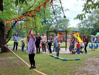 War es im vergangenen Jahr ein Piratenfest was unsere Kinder erfreut hatte, so gab es in diesem Jahr eine kleine Kita-Olympiade, die es galt zu absolvieren. Jedes Kind durfte 4 Stationen besuchen, die Geschicklichkeit, Kraft und Aufmerksamkeit erforderten. Es gab eine Kletterstrecke, einen Fahrzeugparcour, die Slackline musste überwunden und das Sackhüpfen geschafft werden.