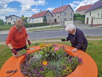 Danke an die Blumenschalen-Betreuer, Meta Fiedler und Thea Mansch.