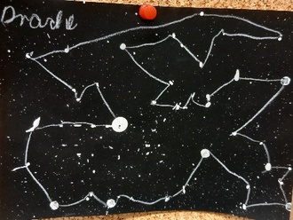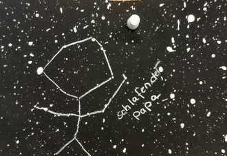 Beim Erschaffen neuer Sternenbilder waren der Fantasie keine Grenzen gesetzt, so entdeckten die Kinder unter anderem das Sternenbild „Der schlafende Papa“,