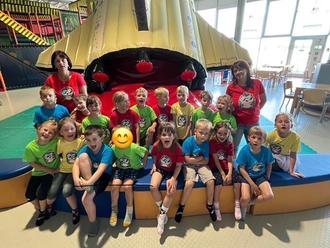 Anschließend liefen wir zum Indoorspielplatz Playport, denn dort wartete das Mittagessen auf uns. Nachdem wir uns gestärkt hatten, konnten wir ausgiebig toben. Bevor wir die Heimreise angetreten haben, gab es für alle noch ein Eis. Am späten Nachmittag nahmen uns unsere Eltern am Bahnhof in Elsterwerda wieder in Empfang. So ging ein schöner, erlebnisreicher Tag für uns zu Ende.