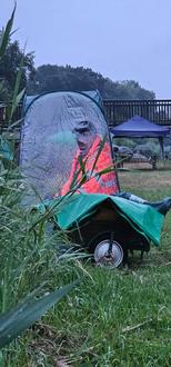 Bei einem Regenschauer unter den Schirm oder ins Gartenhäuschen, ließ der Regen nach, wurden die Angelköder kontrolliert und mit den Nachbarn ein Schwätzchen gemacht. Beim nächsten Schauer schnell unter den Schirm. Das Ganze 4 Stunden lang. Ich glaube, die Fische haben heimlich gelacht.