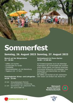 Wir laden herzlich dazu ein, am Samstag, 26. August 2023, von 15 bis 18 Uhr, mit uns ein Sommerfest auf der Bürgerwiese in Hohenleipisch auf dem Aegirweg zu feiern, anschließend im Pomologischen Garten einen Film unter freiem Himmel zu schauen.