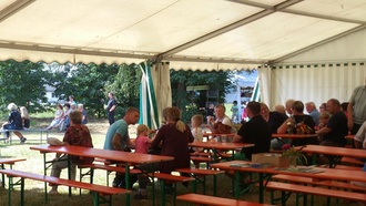 Bevor die Mühlenmusikanten ab 10:30 Uhr zum Frühschoppen bitten, findet um 10:00 Uhr ein Gottesdienst im Festzelt statt. Ab 14:00 Uhr gibt es ein buntes Nachmittagsprogramm. Den Höhepunkt bildet ein Musik-Theater - eine Kooperation der Lobenburger mit den Falkenberger Tanzmäusen.