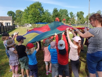 Zum diesjährigen Kindertag am 1. Juni 2023 begrüßten wir die Kinder mit einer großen Tanzrunde auf dem Spielplatz. Es wurde zu verschiedenen Kinderhits, wie z. B. dem Piratentanz, der Feuerwehrgymnastik oder dem Körperteilblues getanzt. Im Anschluss gab es verschiedene Übungen am Schwungtuch, bei denen die Kinder sehr große Freude hatten, aber auch Reaktion gefragt war.