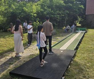 Pünktlich 15:00 Uhr sind die ersten Gäste eingetroffen und auch einige Bewohnenden kamen auf die Festwiese. Und da ging es schon typisch deutsch mit frisch gebrühtem Kaffee und selbstgebackenem Kuchen los. Unser Fest bot eine bunte Palette an Spielen an: Dart, Dosenwerfen, Leitergolf, Schach. Das besondere Highlight war die Freiluft-Kegelbahn. Schnell bildeten sich 2er Gruppen und es wurde eifrig um mehr Punkte gekegelt.