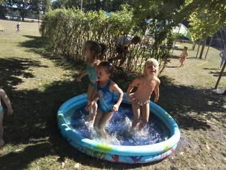 Die Kinder hatten einen Riesenspaß, vor allem dabei, die Erzieher tüchtig nass zu spritzen! Außerdem gab es für jedes Kind ein Eis, Obst und Getränke. Der Vormittag verging wie im Fluge, und an diesem Tag schliefen sogar die Großen zur Mittagsruhe.