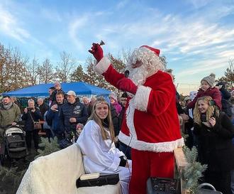 Der Markt hatte sich in der Zwischenzeit bemerkenswert gefüllt und viele Besucher drängten sich von der Bühne bis zum Bürgerhaus, um einen genauen Blick auf das Geschehen zu werfen, denn mit lautem Tuckern eines kleinen roten Traktors kündigte sich die Ankunft des Weihnachtsmannes an. Begleitet von seinem Engel beschenkte er die Kinder und zauberte somit ein Lächeln in viele Gesichter. Der bärtige Geselle ließ es sich nicht nehmen, Weihnachtslieder mit Unterstützung der 4 Musiker von „Different Heads“ anzustimmen und auch selbst an der Mundharmonika zu glänzen.