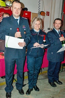 Zahlreiche Beförderungen galt es nachzuholen. Insgesamt sind 11 Kameraden und Kameradinnen, darunter die Kameraden Karsten Fischer und Oliver Wolf zum Löschmeister und die Kameradin Jacqueline Berndt zur Hauptfeuerwehrfrau befördert worden.