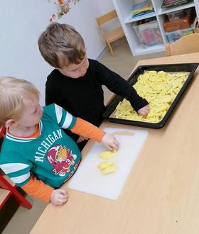 Wie und wo wächst das Gemüse? Was kann man daraus machen, wie schmeckt und riecht es? Genau das erforschten die Kinder zusammen mit ihren Erzieherinnen. Unter anderem haben wir gemeinsam Pommes selbst gemacht, einen leckeren Salat, einen Gemüseauflauf und so vieles mehr.