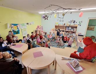 Nach dem gemeinsamen Frühstück klopfte es plötzlich laut an der Tür – und da stand er: Der Weihnachtsmann. Er wurde begeistert von den Kindern empfangen. Nach einer herzlichen Begrüßung nahm der Weihnachtsmann auf seinem Stuhl Platz und hörte den kleinen Künstlern aufmerksam zu. Mit leuchtenden Augen sangen die Kinder Weihnachtslieder und trugen stolz ihre einstudierten Gedichte vor. Ein Highlight des Besuchs war natürlich die Bescherung. Jedes Kind durfte ein kleines Geschenk aus dem großen Sack des Weihnachtsmannes entgegennehmen.