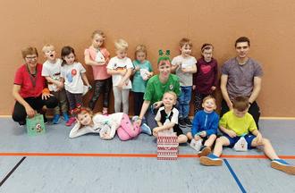 Wenn jetzt jemand neugierig geworden ist und Lust hat mit seinem Kind (ab 3 bis ca. 6 Jahren) auch mal vorbeizuschauen, dann seid ihr herzlich willkommen. Wir freuen uns auf jedes sportbegeisterte Kind. Die Kindersportstunde findet auch im neuen Jahr samstags 10 – 11 Uhr in der Röderlandhalle in Prösen statt.