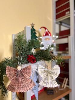 … es wurde gemessen, geschnitten, geprüft, gefaltet, geklebt … und dabei immer wieder zum ‚Nebenmann‘ geschielt in unserer Bastelrunde am 16. Dezember. ‚Das Papier sieht besser aus als meins‘ … ‚ja doch, ich muss schmaler falten‘ … ‚wie hält der Kopf am besten‘ … Aus alten Buchseiten entstanden zauberhafte Engel und jeder war auf seine Weise wunderschön. Wie immer plauderten wir über diese und jene Projekte; Ideen gibt es schon eine ganze Menge für das kommende Jahr.
