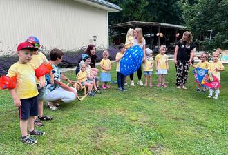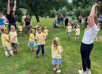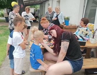 Unser diesjähriges Sommerfest verbrachten wir im „Waldidyll“ in Haida. Alle Familien der Kita kamen mit guter Laune zum Fest. Die Kinder haben ein kleines Programm einstudiert, welches sie den Besuchern präsentierten. Danach gab es jede Menge Spielspaß für die Kinder. Das Spielemobil der Gemeinde Röderland wurde aufgebaut und die Kinder hatten viel Spaß dabei das große „4-gewinnt- Spiel“ auszuprobieren, sich auf der Hüpfburg auszutoben oder aus den großen Bausteinen Türme zu bauen und wieder umzuwerfen. Ein weiteres Highlight für die Kinder war das Kinderschminken. Die Kinder wurden zur Eiskönigin, zum Dino oder zum Schmetterling. Für die Verpflegung sorgte Herr Fischer, der für alle Familien Steaks, Schaschlik und Bratwürste grillte. Wir danken dem „Waldidyll“ für das schöne Fest. Es war ein rundum gelungener Tag.
