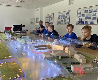 Hier staunten nicht nur die Kinder über die Vielzahl an unterschiedlichen und besonders großen Feuerwehrfahrzeugen. Auch der gesamte Aufbau und die verschiedenen Lichter am Flughafen wurden anschaulich an einem Modell erklärt.