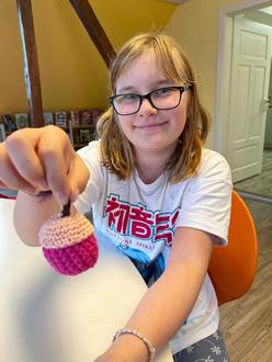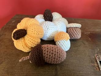 Herbstbunt wurde es tatsächlich am 17. Oktober zu unserem kreativen Nachmittag … ‚bunt‘ gemischt war aber auch die siebenköpfige Gruppe. Sehr überrascht hat uns Lea, die mit 11 Jahren eine wunderschöne Eichel exakt nach Anleitung häkeln konnte. Handarbeit als Hobby hat auch Frau E. – mit 80 Jahren begeistert sie uns ebenso mit tollen Ideen. Für die Fertigstellung der knuffigen Kürbisse reichte die Zeit leider nicht ganz aus – sie wurden als ‚Hausaufgabe‘ mitgenommen.