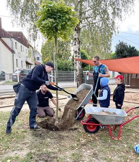 Am 6. Oktober trafen sich Eltern, Kinder und Erzieher der Kita in Saathain, um das Außengelände aufzuwerten. Eine Mutter aus dem Kindergarten organisierte die Pflanzen aus der Baumschule in Oschätzchen. Ein Baum, mehrere Büsche und einige Obststräucher warteten darauf in die Erde gebracht zu werden. Dies gelang uns durch die vielen fleißigen kleinen und großen Helfer zügig. Nach getaner Arbeit gab es Kuchen und Kaffee zur Stärkung und für die Kids durften die Würstchen und Brötchen natürlich nicht fehlen.