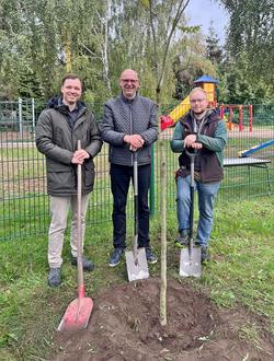 Erstmalig wurde daher auch ein „Einheitsbaum“, gemeinsam mit Bürgermeister Markus Terne, in der Kita „Spatzennest“ in Prösen gepflanzt.