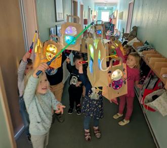 Die Kinder trugen ihre Laternen voller Stolz, sangen Laternenlieder und präsentierten ihre Werke. Die leuchtenden Laternen und die fröhlichen Gesichter der Kinder zauberten ein stimmungsvolles Bild durch die Straßen.