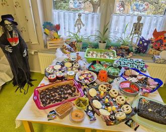 Grusel, Spuk und Aufregung gab es im November zu Halloween. Die Eltern gestalteten ein schaurig schönes Frühstück, da war von krümelig bis salzig alles dabei. Bei Tanz, Spiel und Spaß hatten die Kinder einen schönen Vormittag.