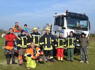 Ein weiteres Dankeschön der Firma Tief- und Kulturbau Mühlbach GmbH, welche uns freundlicherweise die benötigten 5 m langen Holzstämme kostenlos bereitstellte und mit dem LKW transportierte sowie dem Versorgungsteam der Feuerwehr Prösen.