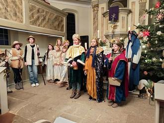 Weihnachtslieder, passend in die Szenen des Krippenspiels eingeordnet, wurden von der Gemeinde gesungen.