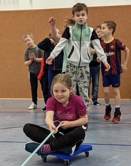 Der Donnerstag stand unter dem Motto „Sport frei“. In der Röderlandhalle erwarteten die Jungen und Mädchen verschiedene Staffelspiele, bei denen sie sich messen konnten. Im Anschluss konnten sie sich im Freispiel individuell austoben.