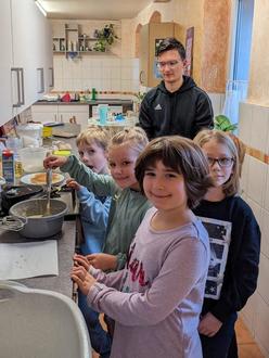 Zum Schluss der Woche haben wir es uns im Hort mit Waffeln und Pizza gemütlich gemacht. Die Kinder durften nach einem einfachen Rezept den Waffelteig anrühren und Pizza backen. Am Ende sind sich alle Kinder einig: Selbst gemacht schmeckt eben doch am besten.