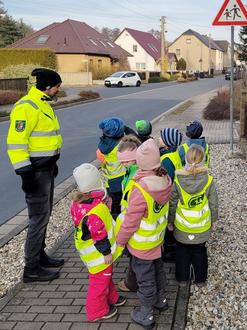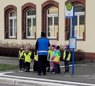 Im Januar besuchte die Verkehrswacht zum zweiten Mal die Vorschulkinder der Kita „Spatzennest“, um sie fit für den Schulweg zu machen. Nachdem beim letzten Besuch die Kinder viel über Verkehrszeichen erfuhren, besprachen die Mitarbeiter nun das Verhalten an der Bushaltestelle und übten mit den Kindern, wie sie sicher über die Straße gehen. Dann war es Aufgabe der Kinder, selbst die Straße zu überqueren. Das kostete viel Mut, denn jeder sollte selbst entscheiden, wann die Straße frei ist und alleine hinübergehen. Natürlich passten die Erwachsenen heimlich auf. Alle Kinder erhielten den Fußgängerführerschein, den sie stolz mit nach Hause nahmen.
