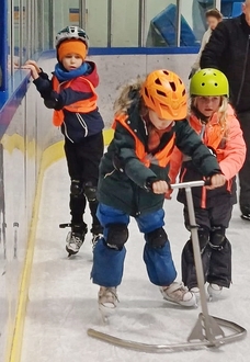 Mit dem Zug ging es am Tag darauf nach Dresden. Das Ziel war die Eislaufhalle der JoyNext Arena. Alle Kinder wagten sich auf das Eis und drehten ihre Runden. Für diejenigen, die das Schlittschuhlaufen noch nicht so gut beherrschten, standen Eislaufhilfen zur Verfügung. Ein Highlight für uns Erzieher war es, zu sehen wie sich die Kinder gegenseitig unterstützten und anleiteten.