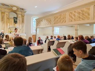 Zwar ist es bereits eine Weile her, aber dennoch in Erinnerung geblieben sind die Highlights der letzten Herbstferien. Bei einem Besuch in der Kirche Prösen erzählte uns Pfarrer Otto-Fabian Voigtländer etwas über den Reformationstag und das Fest Halloween. Er erklärte den Kindern anschaulich den Unterschied zwischen beiden Festtagen und deren Bedeutung. An vielen verschiedenen Stationen konnten die Schüler dann ihr Wissen in einem kleinen Büchlein schriftlich festhalten und mit nach Hause nehmen.