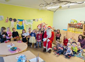 Der Weihnachtsmann verteilte Geschenke an die Kinder, die ihn mit Weihnachtsliedern und Gedichten begrüßten. Es wurde gesungen, gelacht und die vorweihnachtliche Stimmung gemeinsam genossen. Für die Kinder war es ein ganz besonderes Erlebnis.