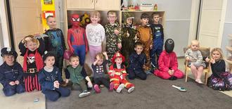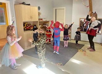 Am Rosenmontag fand dann unsere alljährliche Faschingsfeier in der Kita statt. Der Auftakt dafür war ein kunterbuntes gemeinsames Frühstück mit allen Kindern. Die Kinder kamen mit lustigen Kostümen und wir verbrachten den Tag mit lustigen Spielen, Tänzen und leckeren Knabbereien.